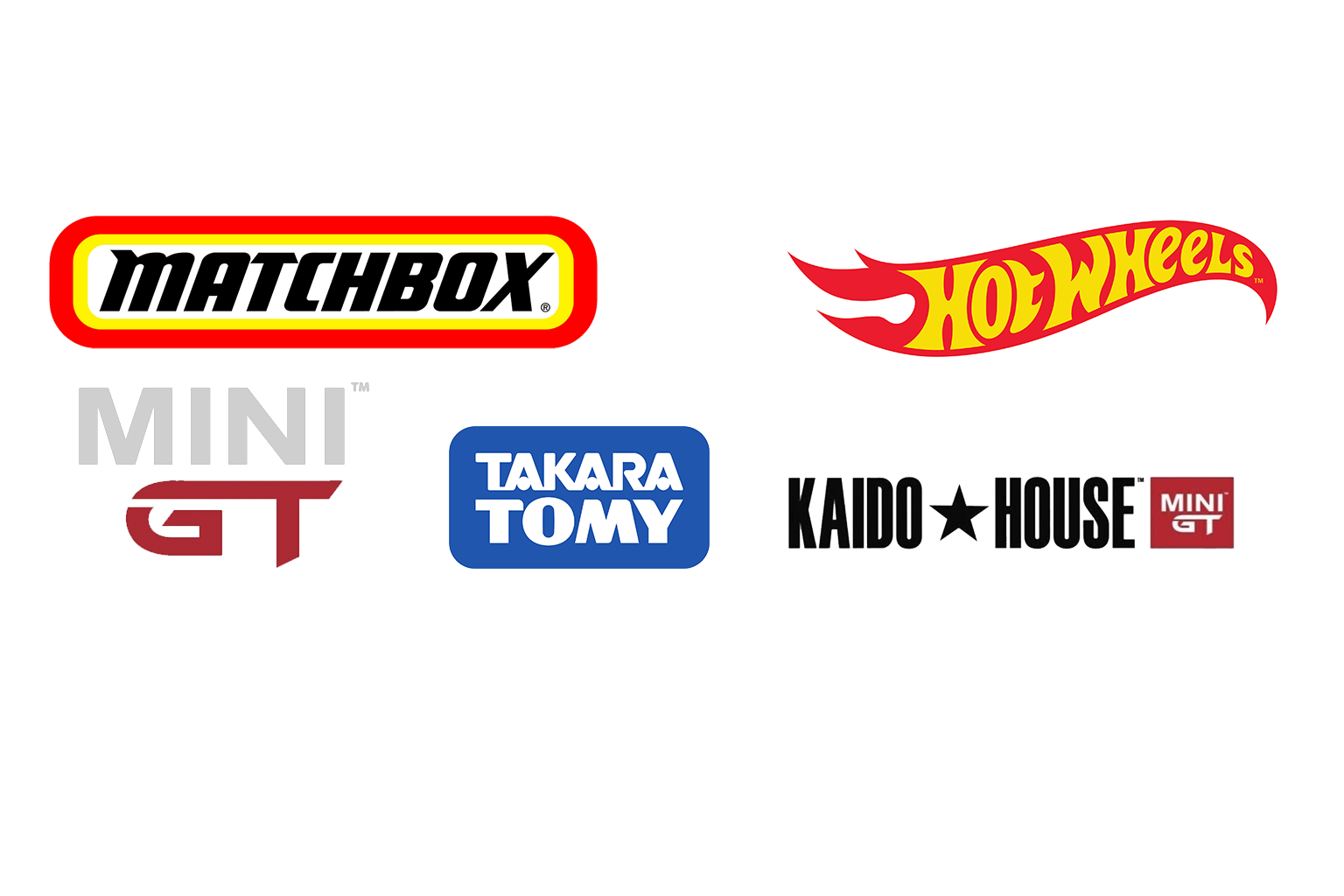 Hotwheels, Matchbox, Takara Tomy, Kaido House, Mini GT...